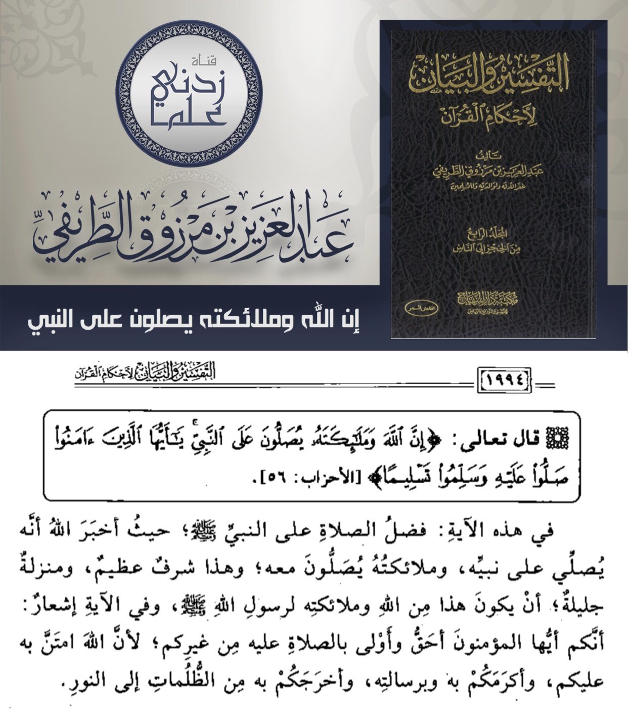 قناة زدني علم ا On Twitter فائدة إن الله وملائكته يصلون على النبي للشيخ عبدالعزيز الطريفي Abdulaziztarefe من كتاب التفسير والبيان لأحكام القرآن الجمعة Https T Co Boz9b6ln9n