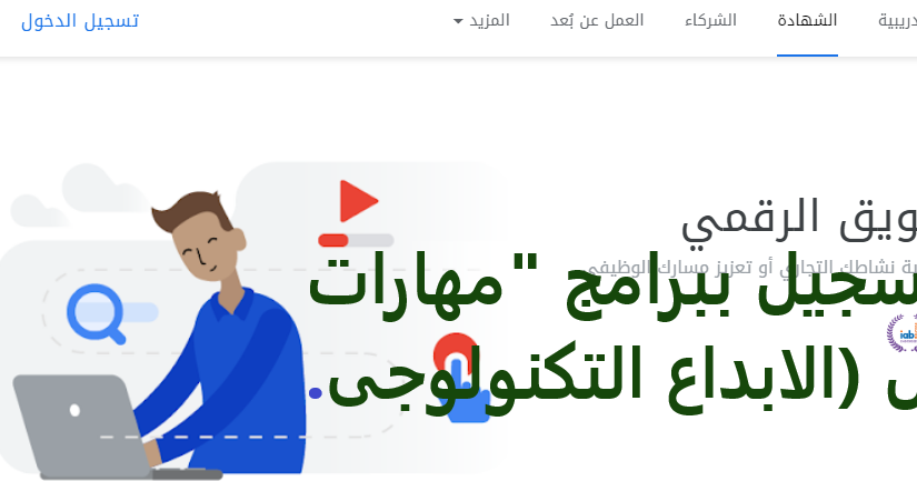 بدء التسجيل ببرامج مهارات جوجل الابداع التكنولوجى
