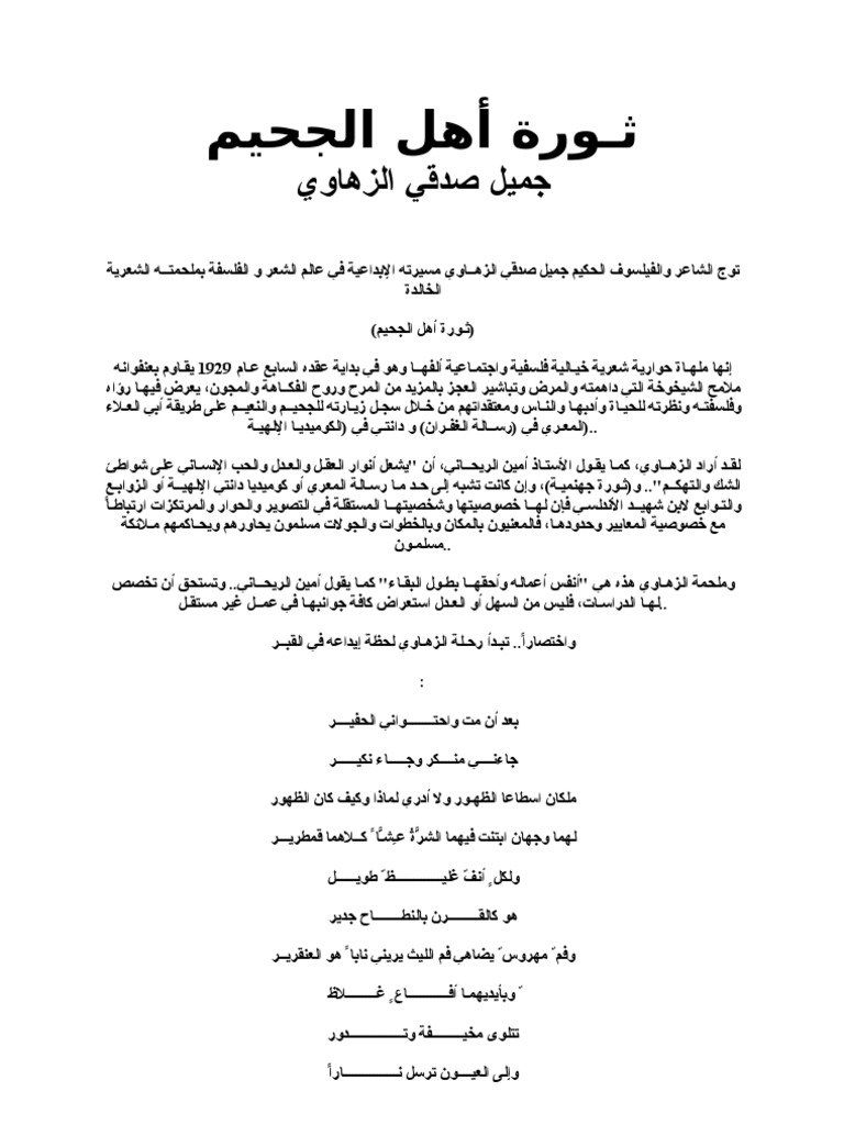 ثورة اهل الجحيم لشاعر وفيلسوف العراق جميل صدقى الزهاوى