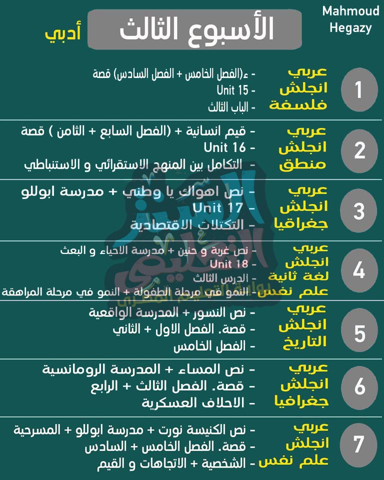 جدول مذاكرة للثانوية العامة ادبى سكول اون لاين مدرستى على النت