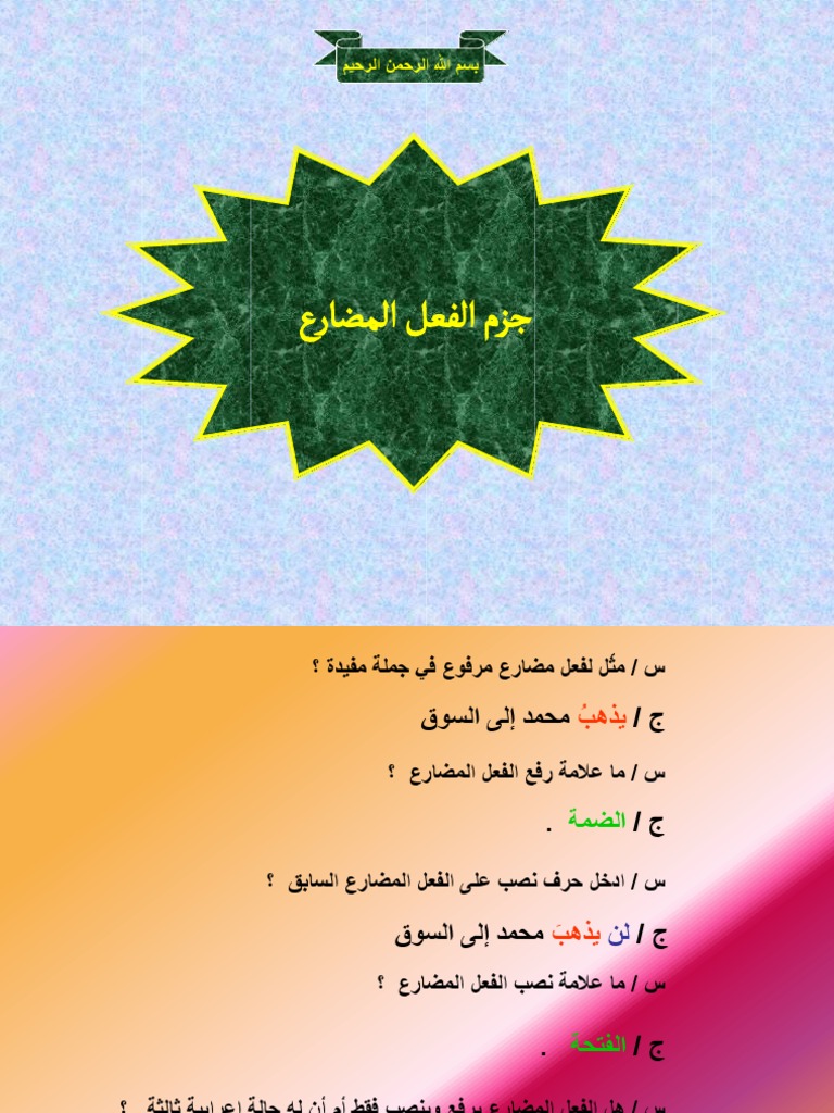 معلقات تزيين القسم درس حروف نصب و جزم الفعل المضارع و درس حروف الجر