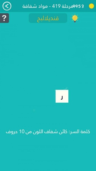 حل سؤال كائن شفاف اللون من ١٠ حروف في لعبة كلمة السر مرحلة ٤١٩ صقور الإبدآع